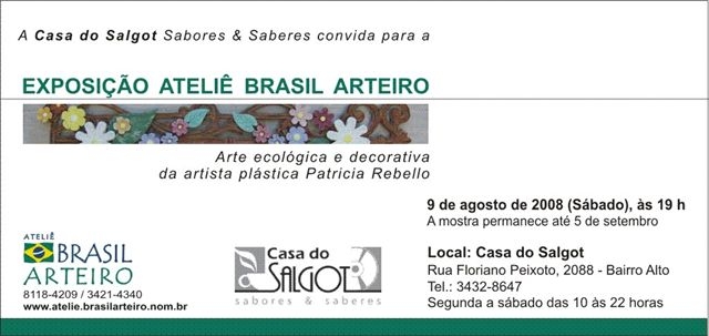 De 2007 a 2016 foi um espaço cultural que abrigou um amplo leque de atividades. Atualmente é apenas ateliê de sua criadora/gestora Lídice Salgot – com produção em memórias editadas, resíduos/desconstrução de trabalhos antigos e entorno da cidade e livros de artista – utilizando-se de fotografias, textos, desenhos, aquarelas, colagens, livros e objetos. Rua Gomes Carneiro, 1042 – Centro – Piracicaba – Cep 13400-530 email: lsalgot@gmail.com email: casadosalgot@terra.com.br